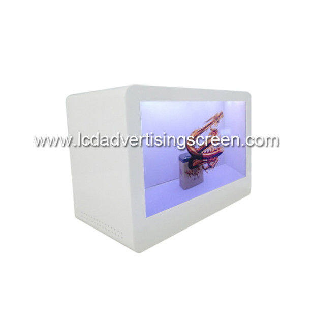 The transparent LCD cabinet/box is a transparent display device specially used for advertising, and it is a popular display party. A transparent LCD screen and a custom cabinet to combine the picture source with a white or light color on the background of the picture, so the objects will appear on the screen. The transparent screen is not only transparent but also can be placed in the transparent LCD window. It can create a video source combined with the product . Not only can see the real thing in the window, but also can see the related video on the transparent screen to achieve a virtual and real display. effect. Touch screen can be choose for display cabinet, you can check the product related information while watching the real thing. It will show a super novel visual experience for viewers.